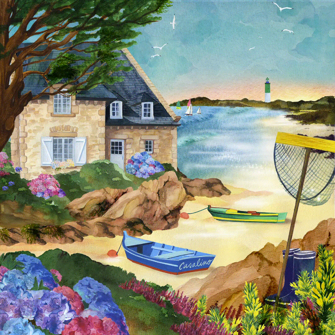 Animated watercolour illustration for Casalino Homes, French luxury homes rental agency.